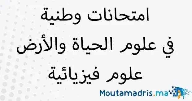 امتحانات وطنية في علوم الحياة والأرض علوم فيزيائية مع التصحيح يمكنكم تحميل ومشاركة موضوع امتحانات وطنية في علوم الحياة والأرض علوم فيزيائية مع التصحيح مع زملائكم، للمزيد من المواضيع التربوية، والدروس والجذاذات، والفروض والامتحانات المحلية والجهوية والوطنية مع التصحيح زوروا موقع متمدرس moutamadris او موقع المفيد