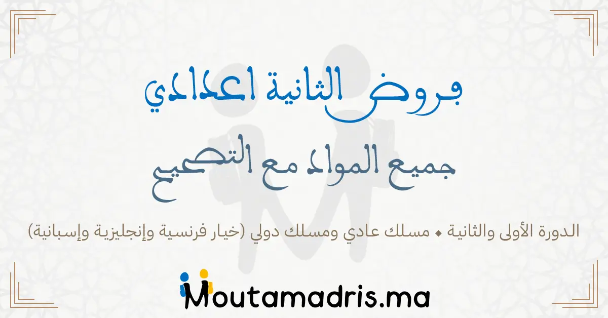 فروض للسنة الثانية اعدادي مسلك دولي خيار فرنسية مع التصحيح الدورة الاولى و الثانية 2024-2025, فروض محروسة المراقبة المستمرة في مادة الرياضيات والفيزياء والكيمياء و علوم الحياة والارض بالفرنسية للمستوى الثانية اعدادي مصصحة وبعضها لا يحتوي على ذلك.