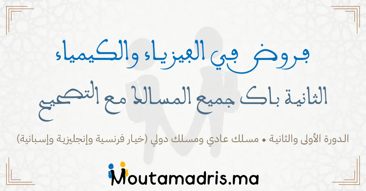 تحميل فروض الفيزياء والكيمياء الثانية باك علوم الحياة والارض مسلك دولي خيار فرنسية 2024-2025 مع التصحيح الدورة الاولى و الثانية, فروض محروسة المراقبة المستمرة في مادة الفيزياء والكيمياء بالفرنسية الثانية بكالوريا مسلك علوم الحياة والارض مصصحة مع الإشارة إلى غياب بعض الملفات أو الحلول.