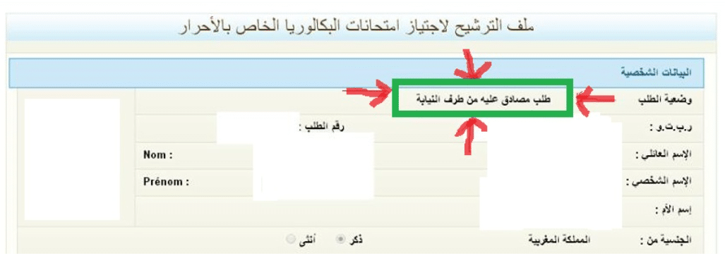 ومن خلال ملف الترشيح ستجد خانة “وضعية الطالب” وبجانبها الحالة هل تم قبول ملفك والمصادقة عليه من طرف النيابة او لا