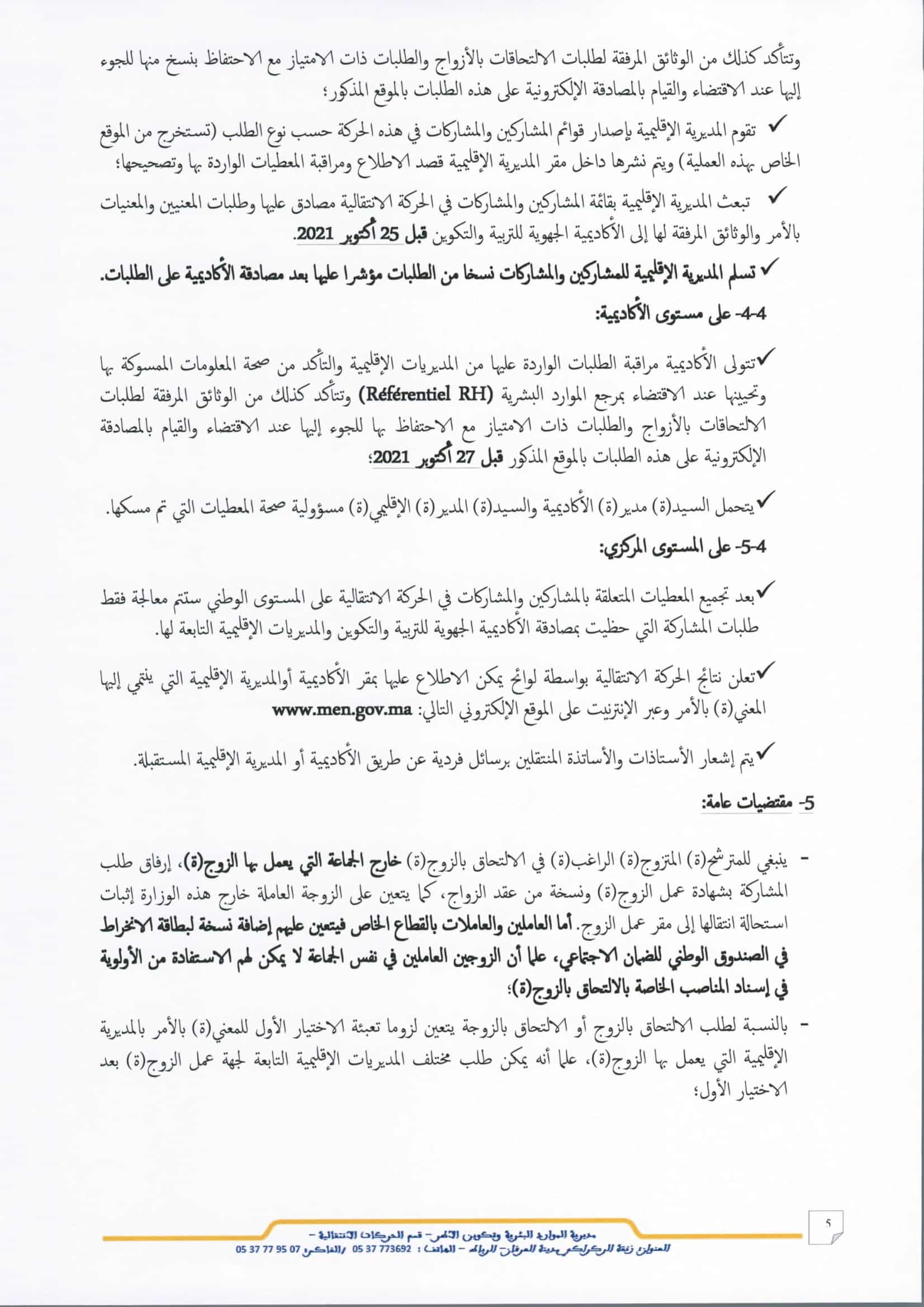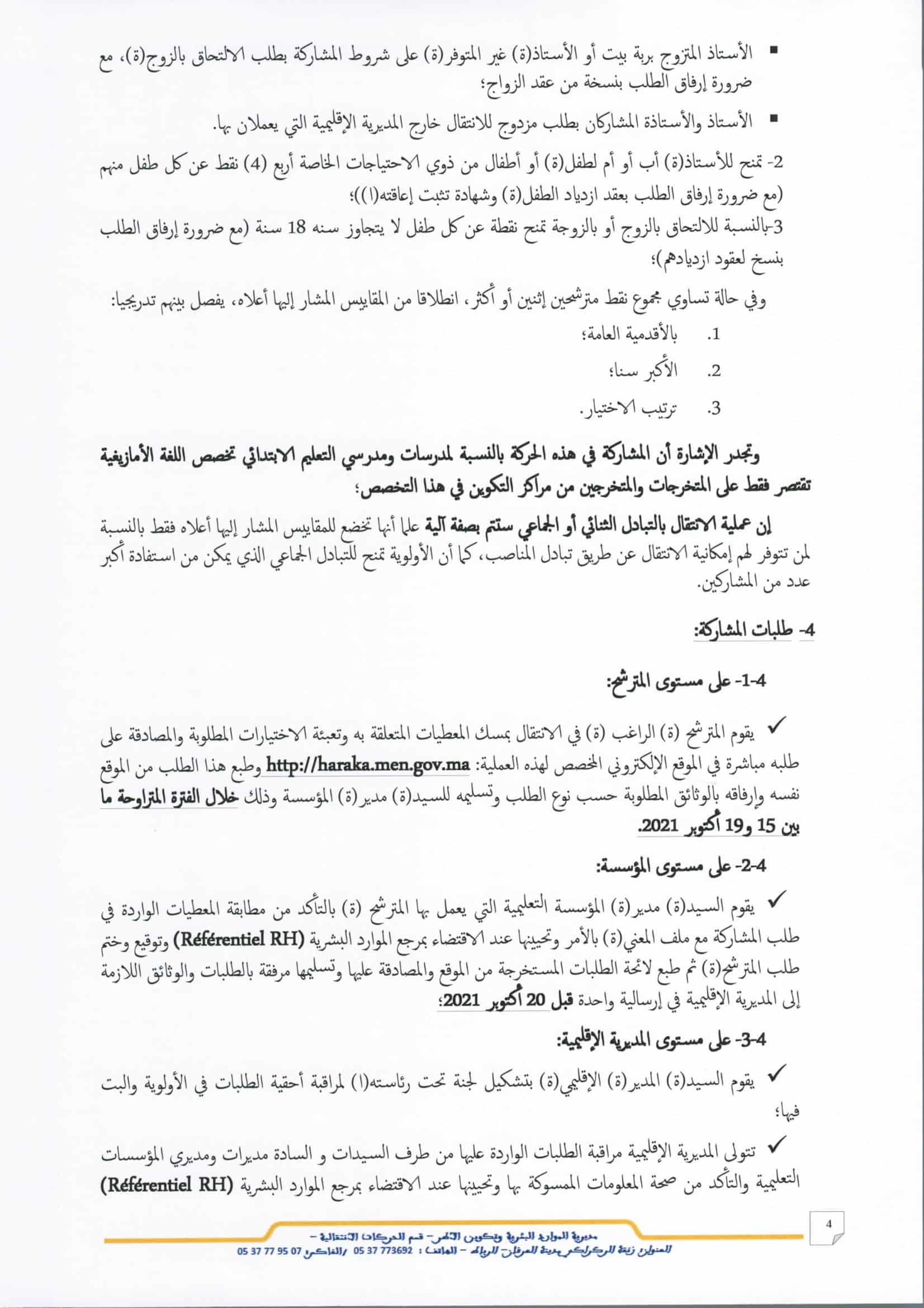 الحركة الانتقالية 2021-2022 Haraka الوطنية الجهوية والمحلية, طريقة التسجيل الجديدة والشروط وآخر اجل والوثائق المطلوبة بحسب وضعية كل طلب وفق المذكرة الصادرة بشهر اكتوبر وذلك عبر موقع الحركة الانتقالية الجديد (haraka.men.gov.ma).