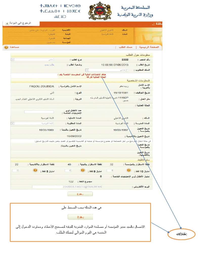 أولا الولوج إلى الموقع يحتاج إلى رقم التأجير و القن السري الذي تأخذه من خلية الإعلاميات بالمديرية الإقليمية.