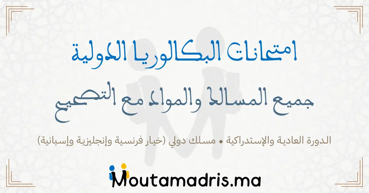 امتحانات وطنية البكالوريا الدولية خيار فرنسية و انجليزية مع التصحيح جميع المسالك و المواد الدورة العادية و الدورة الاستدراكية, جميع نماذج الامتحان الوطني البكالوريا الدولية خيار فرنسية و خيار انجليزية مسلك دولي المغرب مرفقة بعناصر الإجابة والتنقيط بعضها لا يحتوي على ذلك.