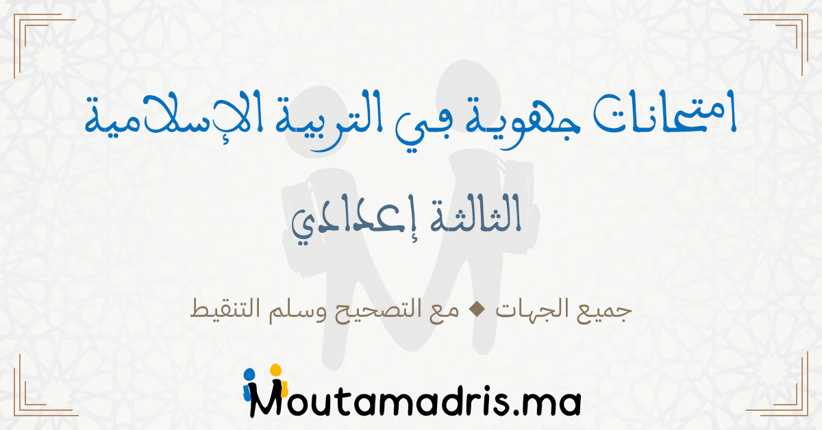 امتحانات جهوية في التربية الاسلامية الثالثة اعدادي مع التصحيح