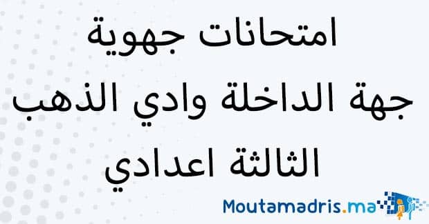 امتحانات جهوية الداخلة وادي الذهب الثالثة اعدادي جميع المواد مع التصحيح, بحيث نعرض جميع نماذج الامتحانات الجهوية لجهة الداخلة وادي الذهب مرفقة بعناصر الإجابة والتنقيط دورة يونيو لتلاميذ السنة الثالثة التعليم الثانوي الاعدادي, نهدف من خلال إنجاز هذه النماذج السابقة إلى مساعدة التلاميذ الحصول على نقطة ممتازة تساعدهم في نيل شهادة الاعدادي بميزة حسنة.