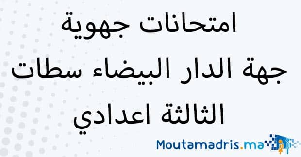 امتحانات جهوية الدار البيضاء سطات الثالثة اعدادي جميع المواد مع التصحيح, بحيث نعرض جميع نماذج الامتحانات الجهوية لجهة الدار البيضاء سطات مرفقة بعناصر الإجابة والتنقيط دورة يونيو لتلاميذ السنة الثالثة التعليم الثانوي الاعدادي, نهدف من خلال إنجاز هذه النماذج السابقة إلى مساعدة التلاميذ الحصول على نقطة ممتازة تساعدهم في نيل شهادة الاعدادي بميزة حسنة.