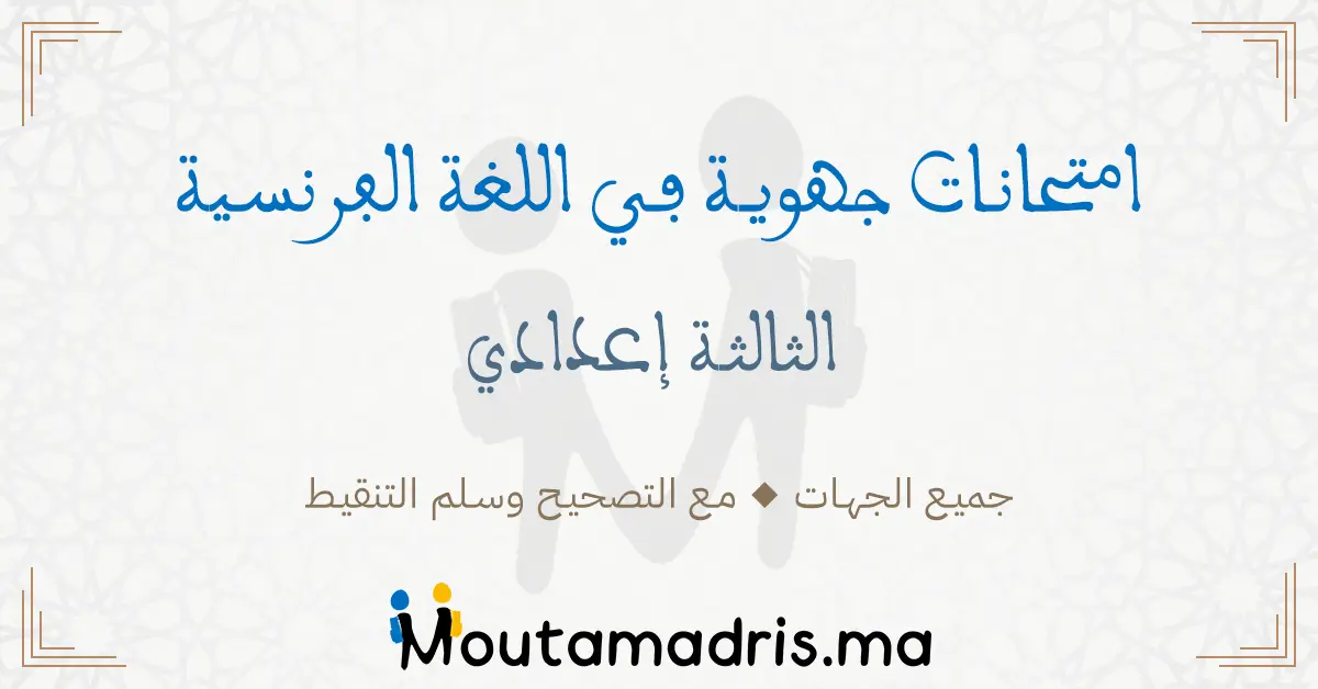 امتحانات جهوية في اللغة الفرنسية الثالثة اعدادي مع التصحيح