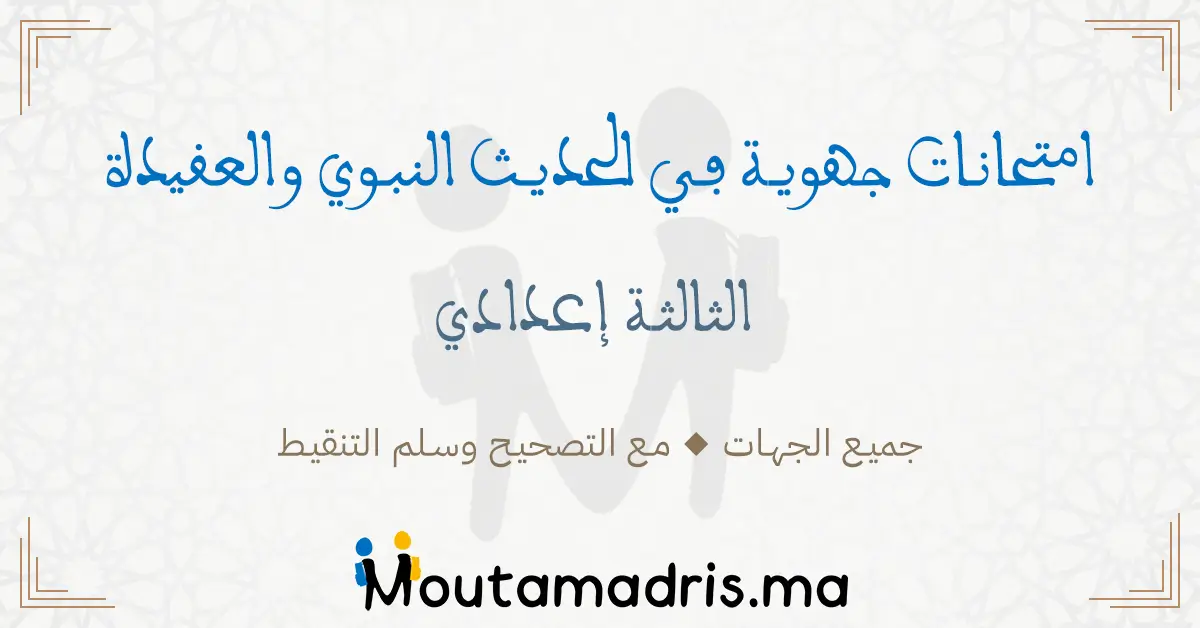 امتحانات جهوية في الحديث النبوي والعقيدة الثالثة اعدادي مع التصحيح