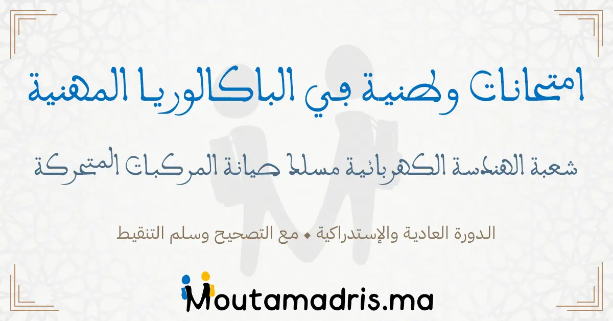 امتحانات وطنية مسلك صيانة المركبات المتحركة : خيار السيارات مع التصحيح البكالوريا المهنية شعبة الهندسة الكهربائية الدورة العادية و الدورة الاستدراكية, نماذج الامتحان الوطني البكالوريا المهنية في مادة الرياضيات واللغة الألمانية واللغة الاسبانية واللغة الانجليزية واللغة الايطالية والفيزياء والكيمياء وعلوم الحياة والارض و مواد مهنية 1 و 2 المغرب مرفقة بعناصر الإجابة والتنقيط و تجدر الإشارة إلى غياب بعض الملفات.