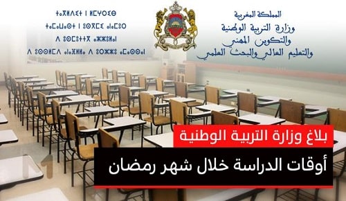 تحميل بلاغ اوقات الدراسة في شهر رمضان 2018 بالمغرب