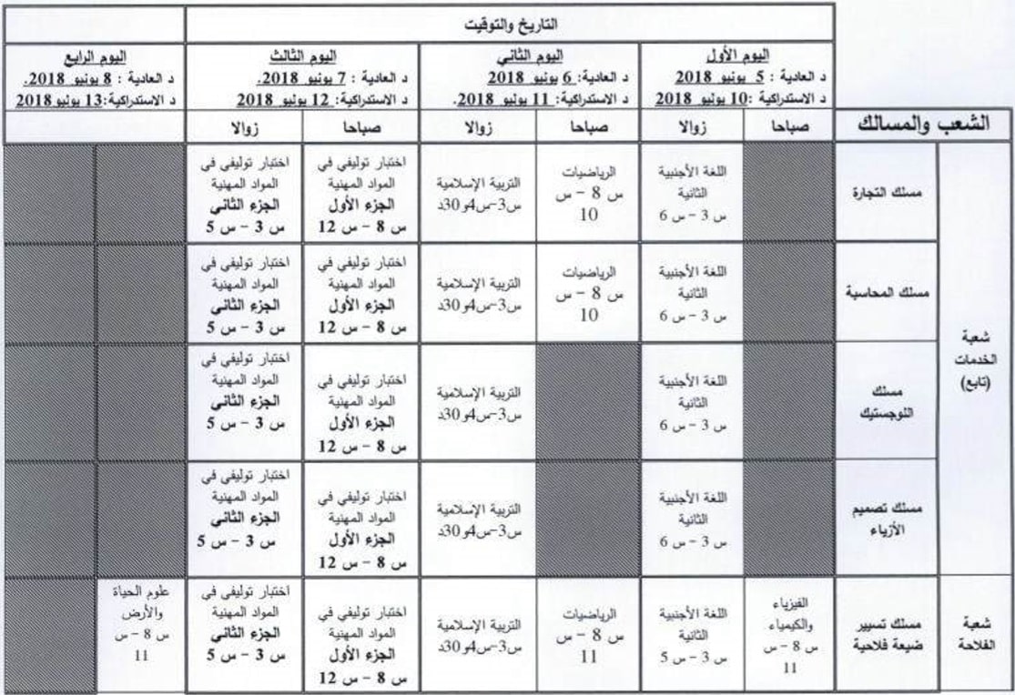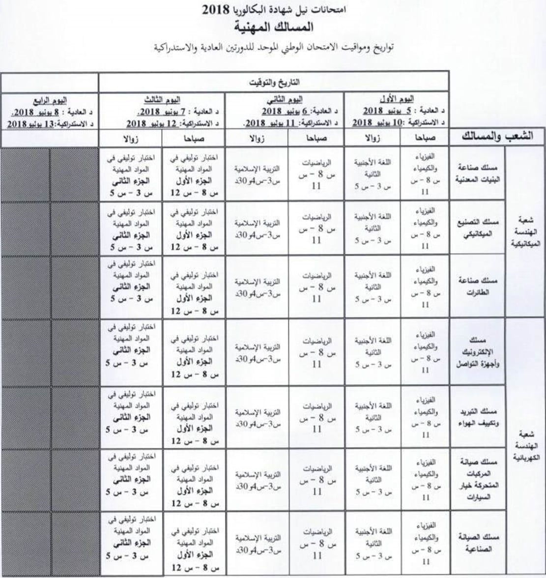 ستجرى اختبارات الدورة العادية أيام 05 و 06 و 07 و 08 يونيو 2018، بالنسبة لجميع الشعب
