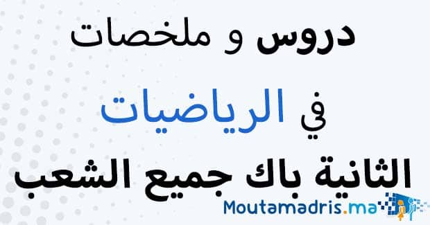 ملخصات دروس الرياضيات الثانية باك جميع الشعب مختارة بعناية, شروحات و تلخيصات ممتازة لجميع الدروس نهدف من نشرها الى مساعدة تلاميذ الثانية باكالوريا على الاستيعاب و الفهم الجيد استعدادا لإجتياز فروض المراقبة المستمرة الدورة الاولى والدورة الثانية في دروس مادة الرياضيات.
