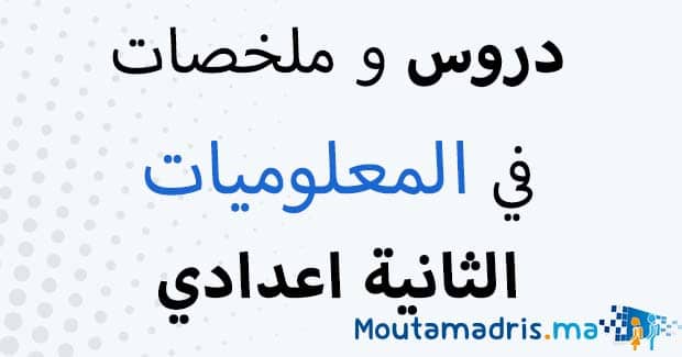 ملخصات دروس المعلوميات للسنة الثانية اعدادي مختارة بعناية, شروحات و تلخيصات ممتازة لجميع الدروس نهدف من نشرها الى مساعدة تلاميذ السنة الثانية من التعليم الثانوي الاعدادي على الاستيعاب و الفهم الجيد استعدادا لإجتياز فروض المراقبة المستمرة للدورتين الاولى و الثانية في دروس مادة الاعلاميات.