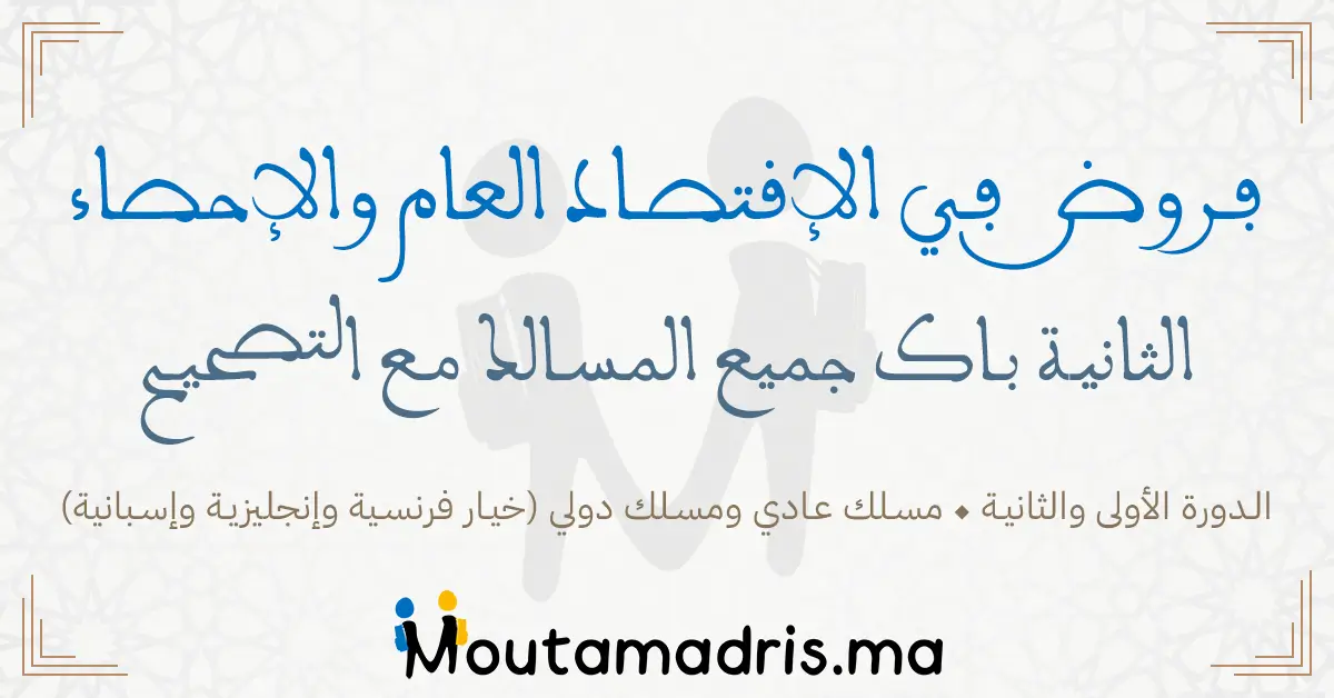 تحميل فروض الإقتصاد العام والإحصاء الثانية باك 2024-2025 مع التصحيح الدورة الاولى و الثانية جميع المسالك علوم فيزيائية و علوم الحياة والارض و علوم رياضية و اداب وعلوم انسانية و اقتصادية وتكنولوجية, فروض محروسة المراقبة المستمرة في مادة الإقتصاد العام والإحصاء الثانية بكالوريا مصصحة مع الإشارة إلى غياب بعض الملفات أو الحلول.