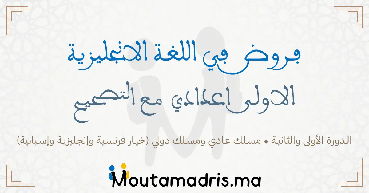 تحميل فروض اللغة الانجليزية للسنة الاولى اعدادي مع التصحيح الدورة الاولى و الدورة الثانية 2024-2025, فروض محروسة المراقبة المستمرة في مادة اللغة الانجليزية للسنة الاولى اعدادي مصصحة مع الإشارة إلى غياب بعض الملفات , نهدف من نشرها من اجل الاستعداد الشامل والجيد لإجتياز الفروض بنجاح وتفوق.