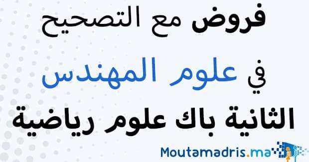 فروض علوم المهندس الثانية باكالوريا علوم رياضية مع التصحيح مختارة بعناية فائقة, نماذج ممتازة مرفقة بالحلول نهدف من نشرها الى مساعدة تلاميذ السنة الثانية باكالوريا مسلك العلوم الرياضية على الفهم الجيد و الاستعداد الجيد والشامل لإجتياز الامتحان الوطني وفروض المراقبة المستمرة الدورة الاولى و الدورة الثانية في مادة علوم المهندس.