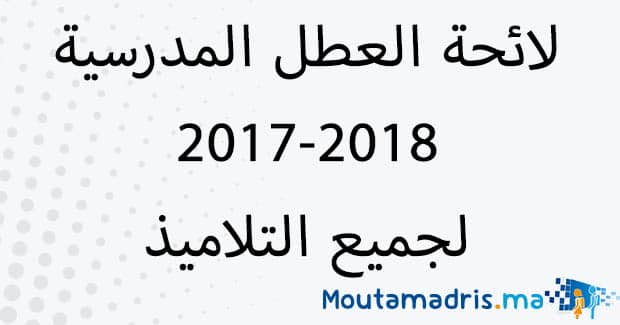 اذن هذه هي لائحة العطل المدرسية الرسمية 2017/2018 بالمغرب لجميع الاسلاك التعليمية المدرسية التعليم الابتدائي والاعدادي والثانوي.