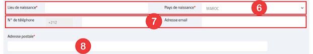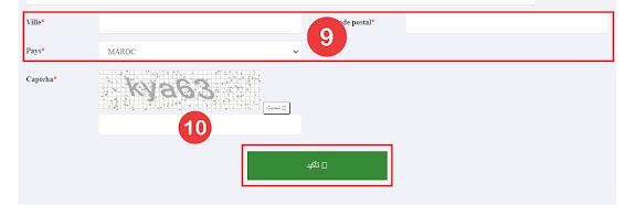 – أما بالنسبة لهاته الخانات نملئ المدينة التي تقيم بها، والبلد وكذلك رمز البريدي.