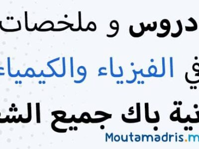 ملخصات دروس الفيزياء والكيمياء الثانية باك جميع الشعب مختارة بعناية, شروحات و تلخيصات ممتازة لجميع الدروس نهدف من نشرها الى مساعدة تلاميذ الثانية باكالوريا على...