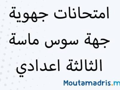 امتحانات جهوية سوس ماسة الثالثة اعدادي جميع المواد مع التصحيح, بحيث نعرض جميع نماذج الامتحانات الجهوية لجهة سوس ماسة مرفقة بعناصر الإجابة والتنقيط دورة يونيو...