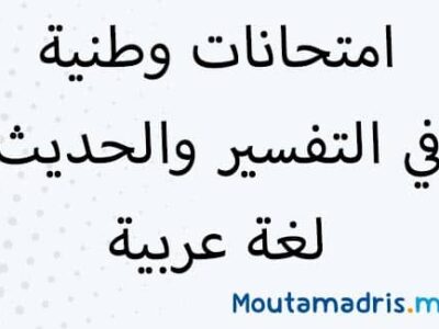 امتحانات وطنية في مادة التفسير والحديث لغة عربية للسنة الثانية باكالوريا مع التصحيح الدورة العادية و الدورة الاستدراكية, بحيث نعرض جميع نماذج امتحانات الثانية بكالوريا...