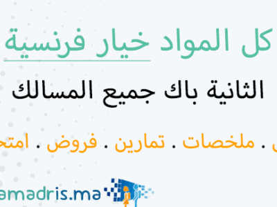 دروس ملخصات تمارين مع التصحيح الثانية باك علوم رياضية مسلك دولي خيار فرنسية جميع المواد, اضافة الى فروض و امتحانات مع التصحيح. تخص مادة الرياضيات...