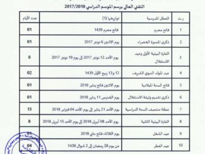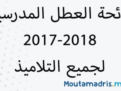 Calendrier vacances scolaires 2017-2018 au Maroc : dates importantes Le calendrier scolaire 2017-2018 au Maroc a été fixé par le ministère de l’Éducation Nationale et...