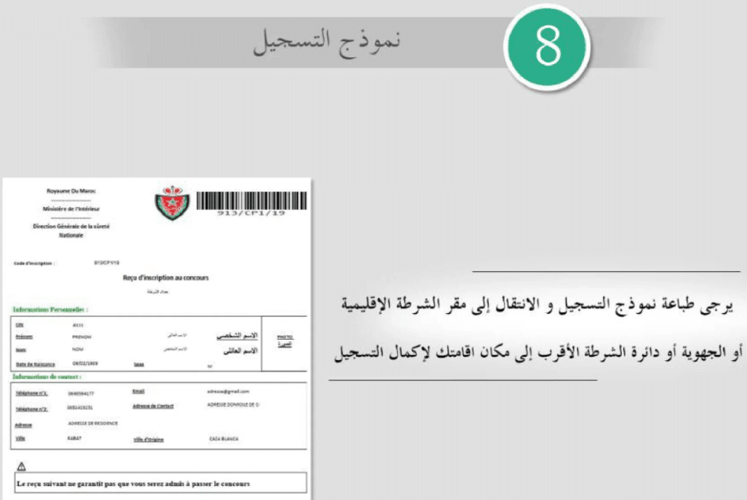 التسجيل المسبق يتم عبر بوابة التوظيف الإلكترونية الخاصة بالأمن الوطني: https://concours.dgsn.gov.ma/.