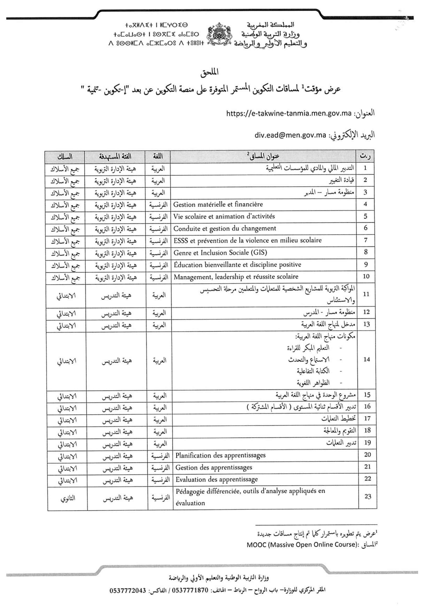 للتسجيل يجب زيارة الرابط التالي : https://e-takwine-tanmia.men.gov.ma/