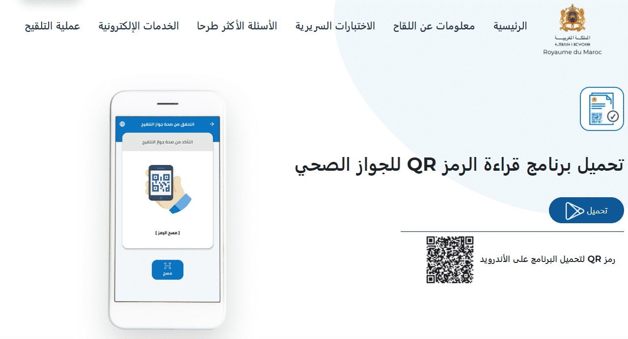 لتحميل برنامج قراءة الرمز QR للجواز الصحي، يجب اتباع الخطوات التالية:
