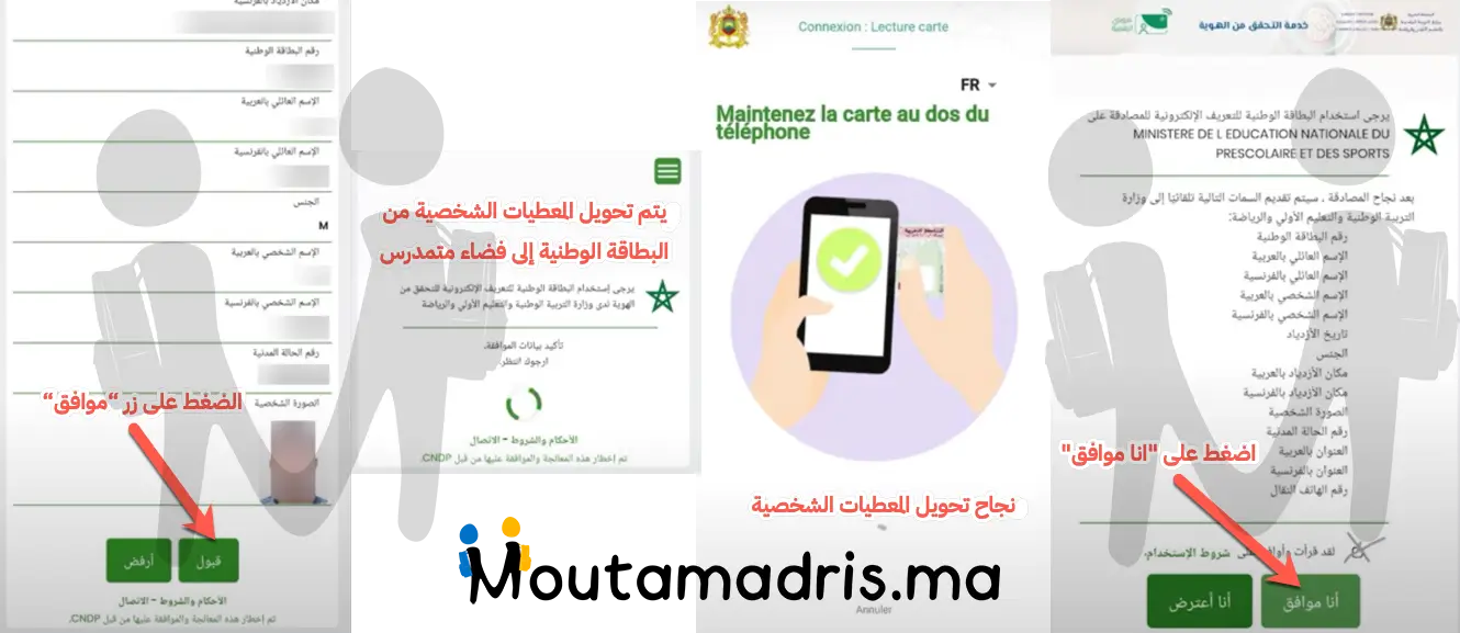 1- بعد نجاح المسح، ستعود تلقائيا لفضاء متمدرس وستجد بياناتك قد ملئت بشكل أوتوماتيكي.