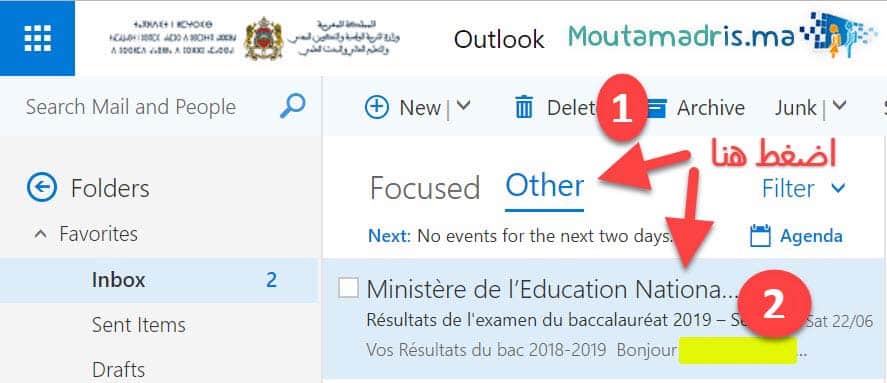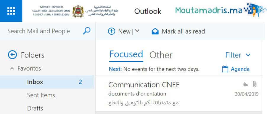 Visiter le site web : Outlook.live.ma ou www.taalim.ma