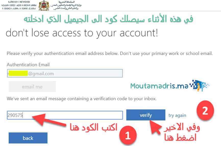 ستصلك رسالة فيها كود على الجيميل الذي دخلته, ثم نتابع كما في الصور: