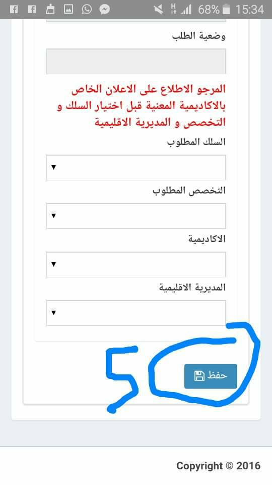 بعد انجاز المطلوب و ملئ جميع الخانات بالمعلومات اللازمة و التاكد من انها صحيحة اضغط على حفظ