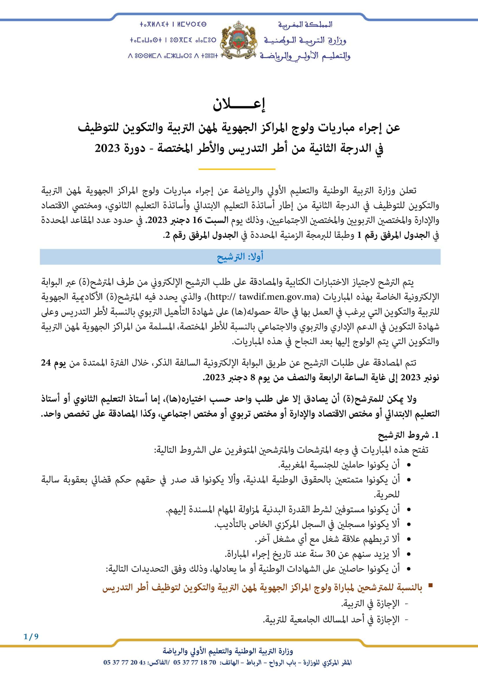 ملف الترشيح مباراة التعليم 2023/2024 Tawdif.men.gov.ma