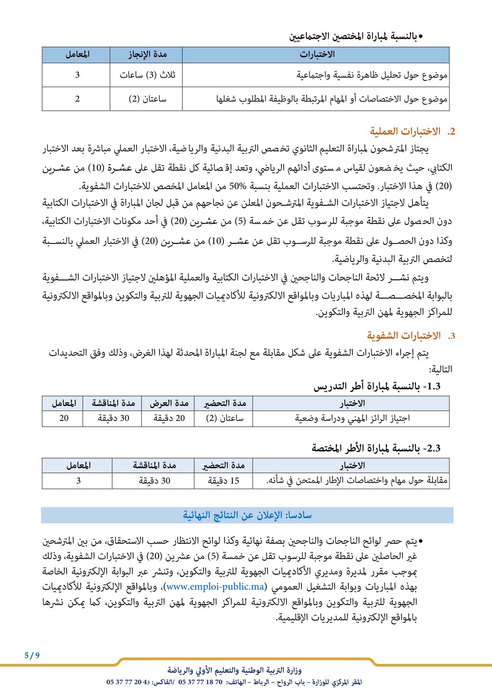 التسجيل في مباراة التعليم بالتعاقد 2023/2024 مفتوح من 24 نونبر إلى 10 دجنبر 2023. سيجرى امتحان مباراة التعليم يوم 16 دجنبر 2023.