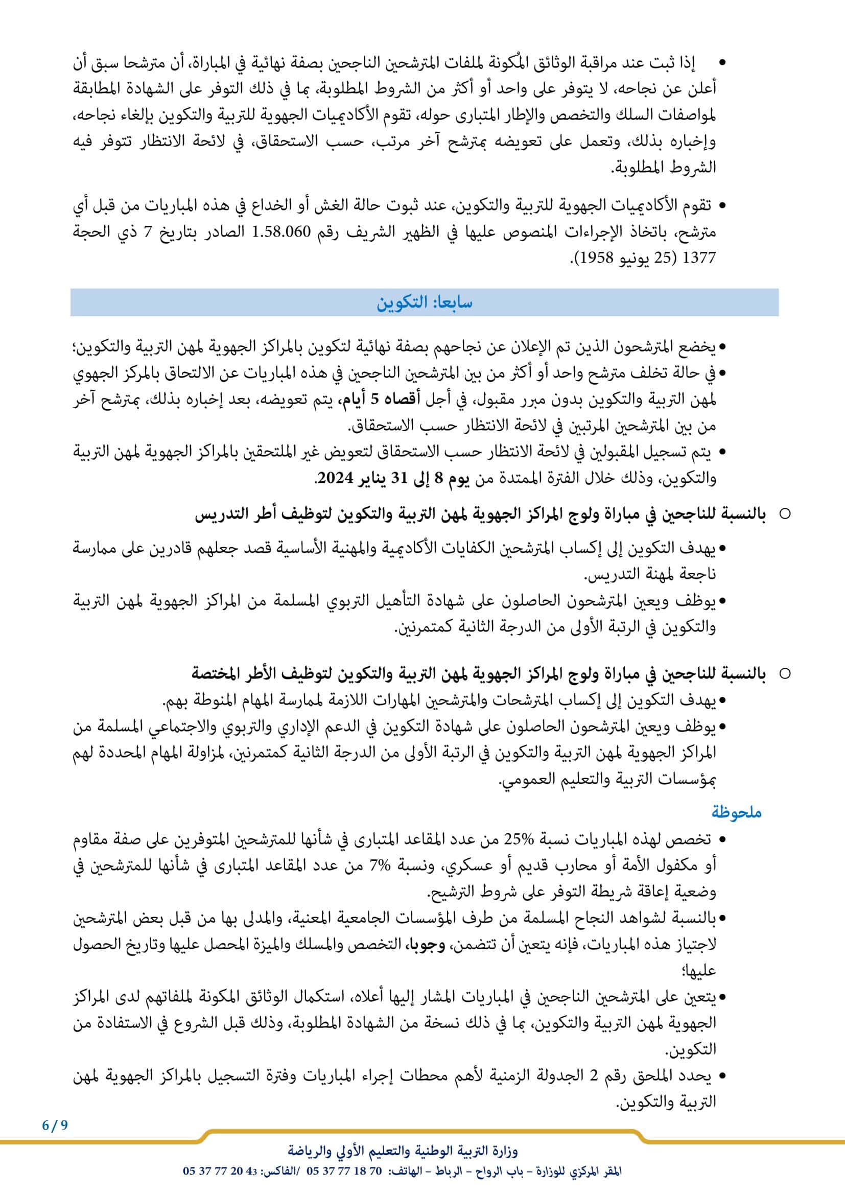 Tawdif.men.gov.ma 2023-2024 التسجيل في مباراة التعليم بالتعاقد الاعلانات الرسمية للمباراة لجميع الجهات وتاريخ المباراة وآخر اجل, طريقة التسجيل الصحيحة في مباراة أطر التدريس وأطر الدعم الإداري والتربوي والاجتماعي, نتائج الإنتقاء ولوائح المقبولين مواقيت اجراء الاختبار الكتابي مباراة التعليم نتائج الشفوي واللوائح النهائية للناجحين المقبولين في توظيف الأساتذة, الشروط والوثائق المطلوبة للتسجيل القبلي في بوابة التوظيف الأساتذة أطر الأكاديميات الخاصة بالترشيح لاجتياز مباراة التعليم 2023/2024 tawdif.men.gov.ma، سيكون على المسجلين فقط (دون غيرهم)، المصادقة على الترشيح الإلكتروني وإيداع ملفات الترشيح بالمديريات الإقليمية التي يعبرون عن الرغبة في العمل بها.
