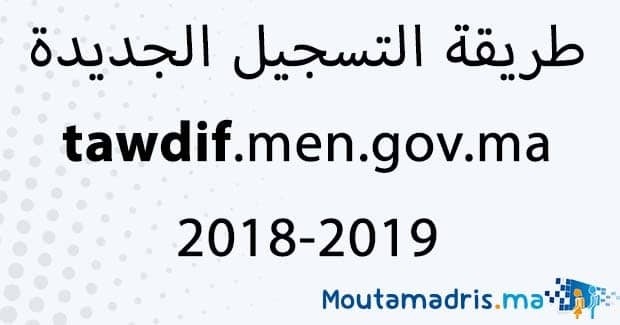 tawdif.men.gov.ma طريقة التسجيل الجديدة 2019-2020 يمكنكم تحميل ومشاركة موضوع tawdif.men.gov.ma طريقة التسجيل الجديدة 2019-2020 مع زملائكم، للمزيد من المواضيع التربوية، والدروس والجذاذات، والفروض والامتحانات المحلية والجهوية والوطنية مع التصحيح زوروا موقع متمدرس moutamadris او موقع المفيد